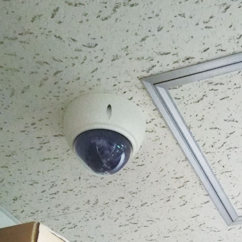 受付は人の出入りが多く、状況の把握が難しい場所のため、音声も記録できるマイク付き防犯カメラを設置。